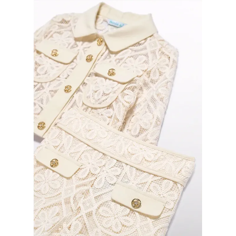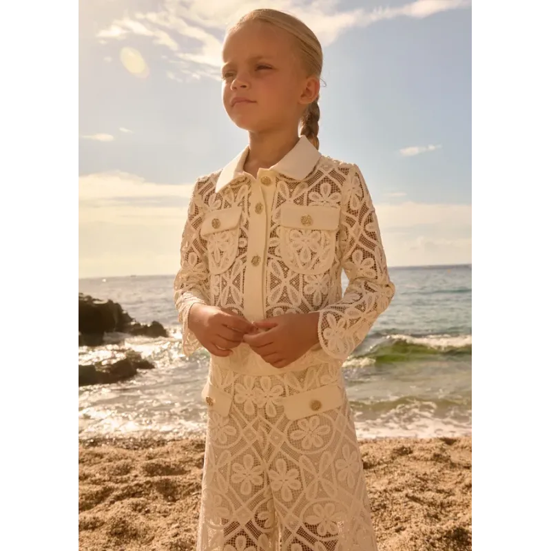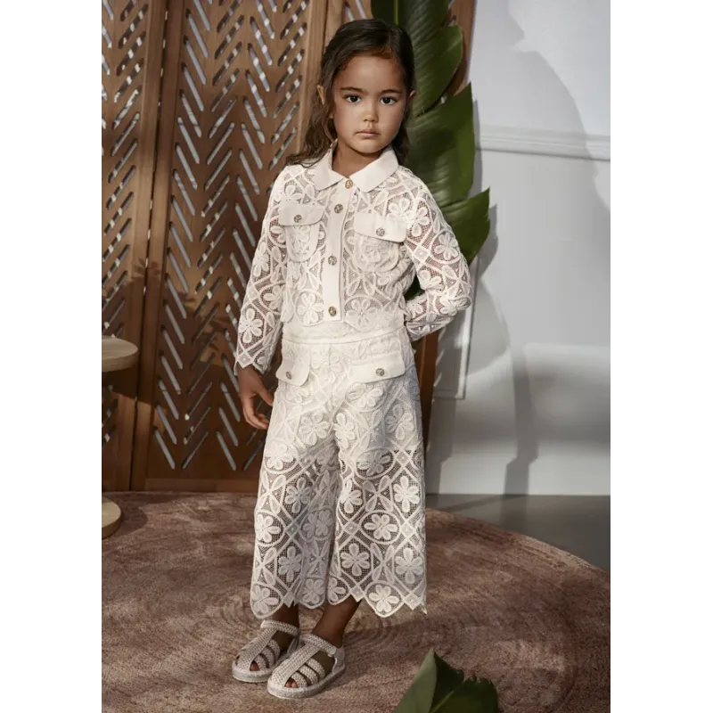 Garnitur ze spodniami z gipiury typu culotte dla dziewczynki. Skład: 96% Poliester, 3% Lyocell, 1% Len.