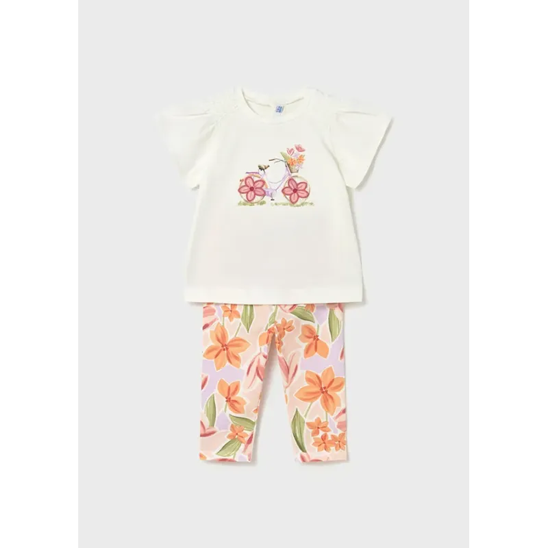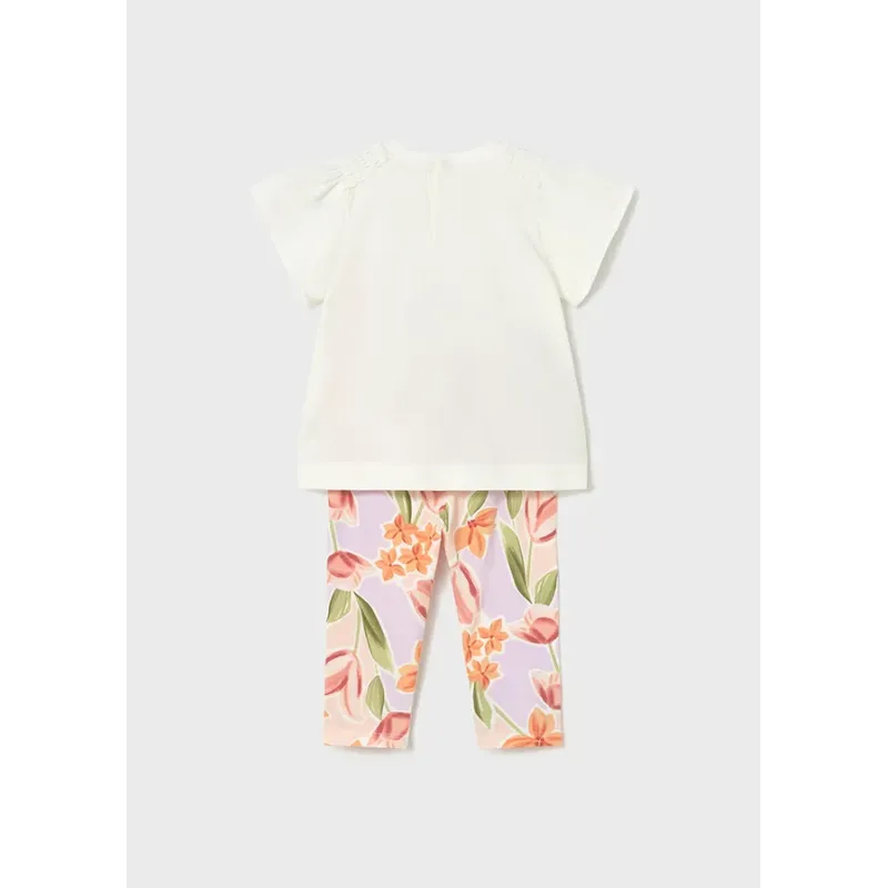 Komplet z długimi legginsami we wzory i koszulką z krótkim rękawkiem dla dziewczynki. Skład: 100% Bawełna.