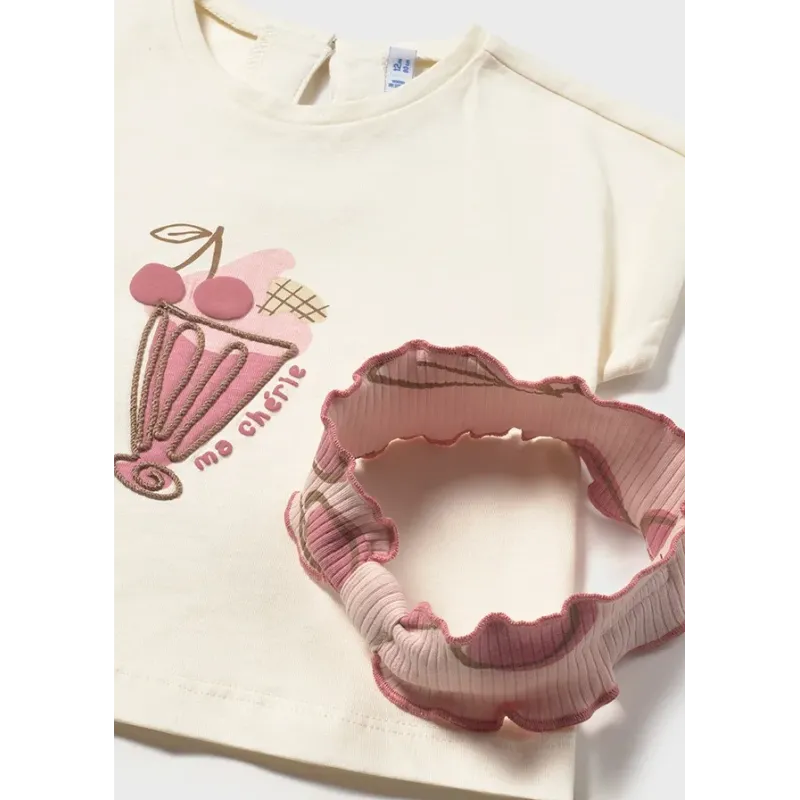 Komplet z legginsami i koszulką dla dziewczynki w zestawie z opaską. Skład: 100% Bawełna.