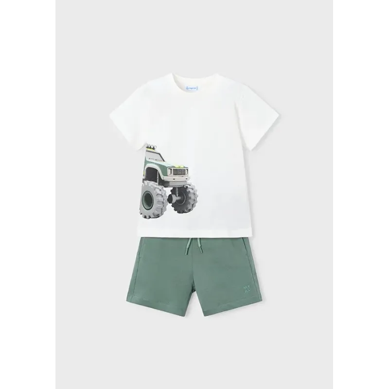 Komplet z koszulką z krótkim rękawkiem i krótkimi, dresowymi spodenkami dla chłopca. Skład: 100% Bawełna.
