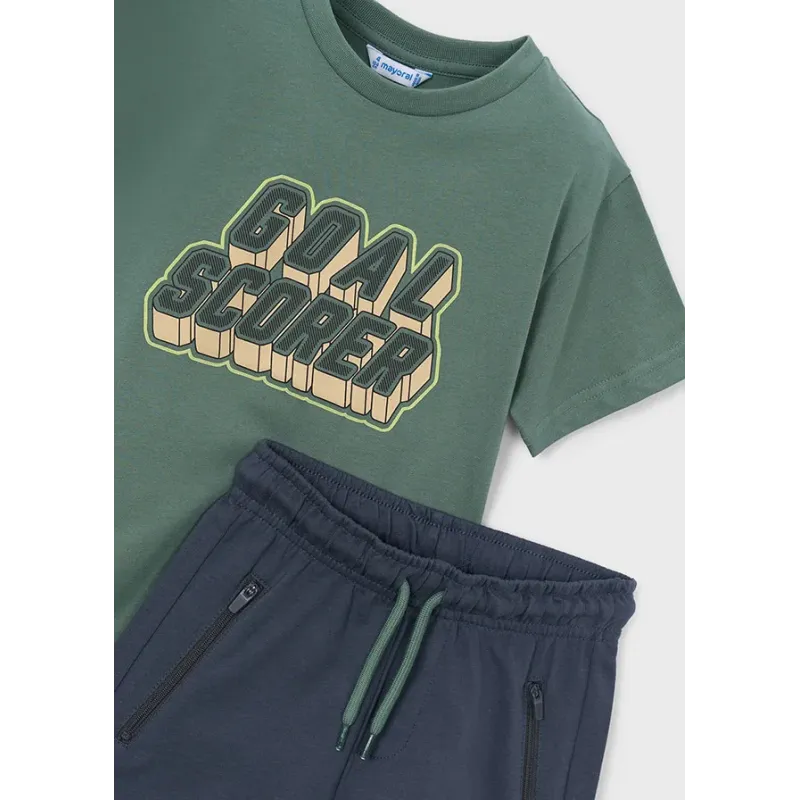 Komplet z koszulką z krótkim rękawkiem i krótkimi, dresowymi spodenkami dla chłopca. Skład: 100% Bawełna.