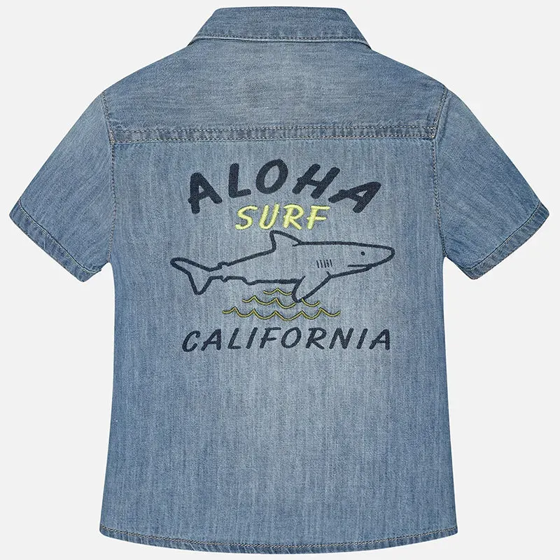 Koszula z kołnierzykiem dla chłopaka. Koszula z długim rękawem z mankietem zapinanym na guziki. Kołnierzyk koszulowy. Zapięcie z przodu na guziki. Artykuł wykonany ze 100% bawełny.
