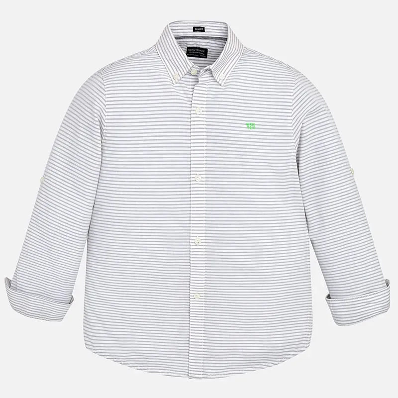 Koszula z kołnierzykiem dla chłopaka. Koszula z długim rękawem z mankietem zapinanym na guziki. Kołnierzyk koszulowy. Zapięcie z przodu na guziki. Ubranko wykonane ze 100% bawełny.