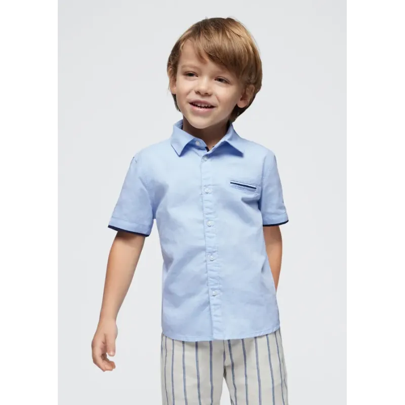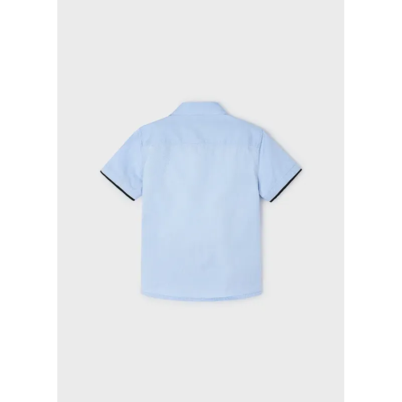 Koszula z krótkim rękawem na stójce dla chłopca. Skład: 100% Bawełna.