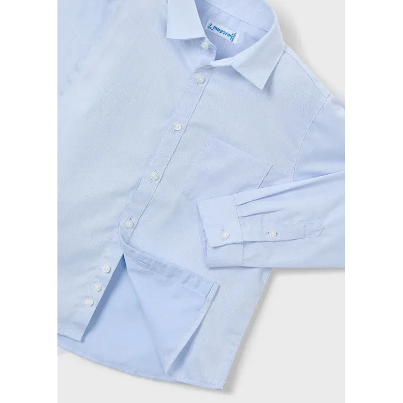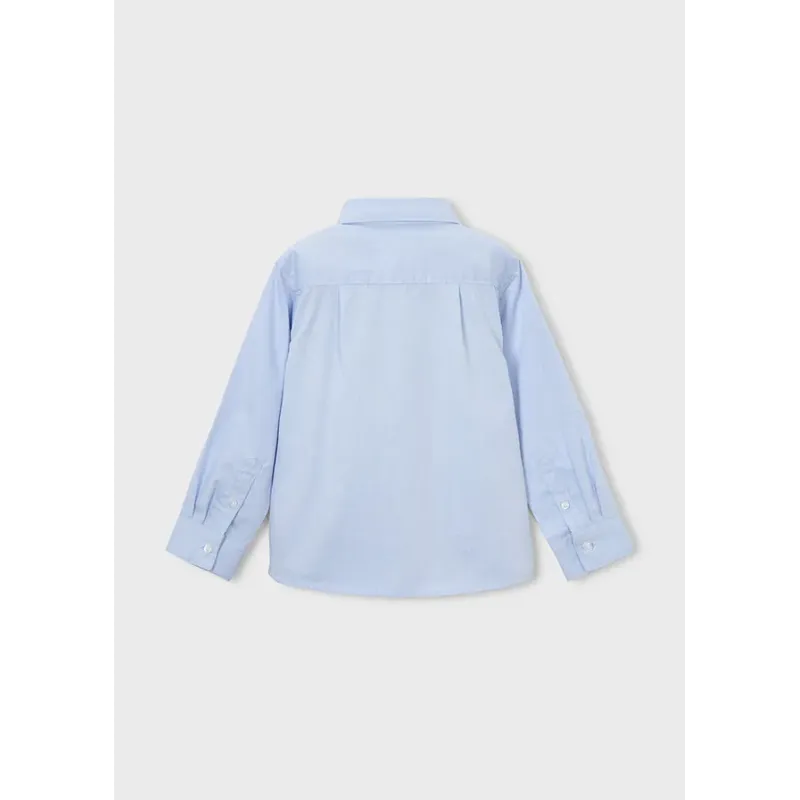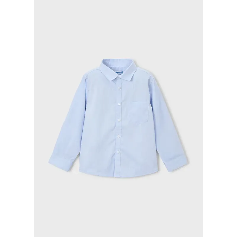Koszula z długim rękawem dla chłopca z mankietem zapinanym na guziki. Kołnierzyk koszulowy. Ubranko wykonane ze 100% bawełny. Model gładki.