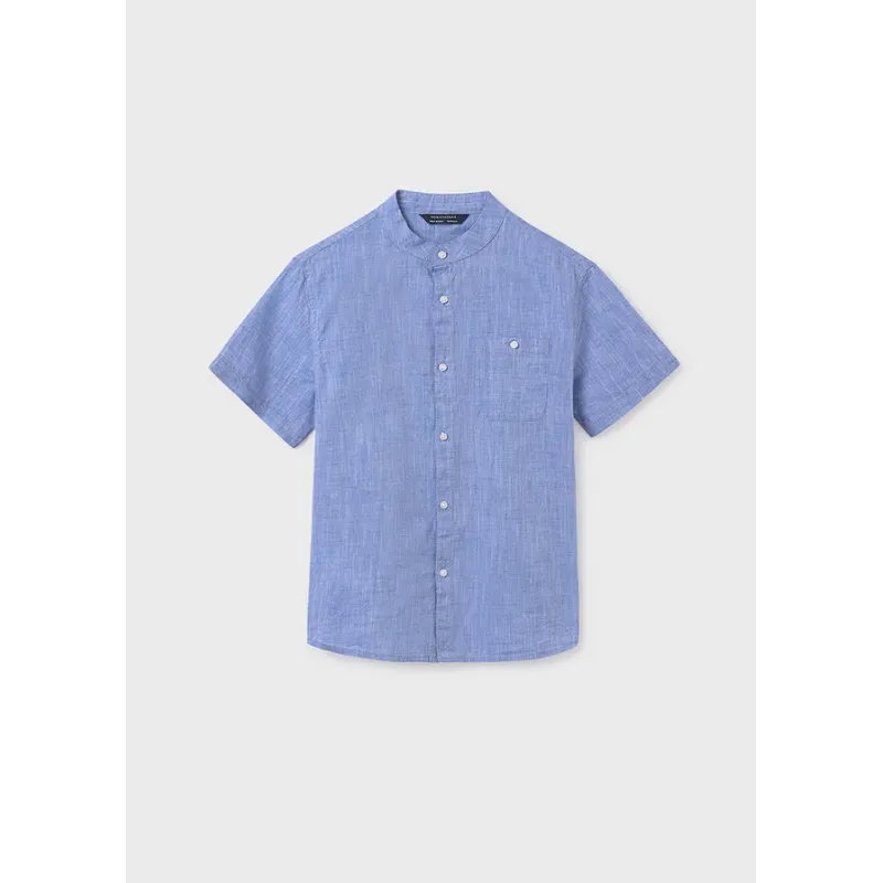 Koszula z krótkim rękawem na stójce dla chłopca. Skład: 100% Bawełna.
