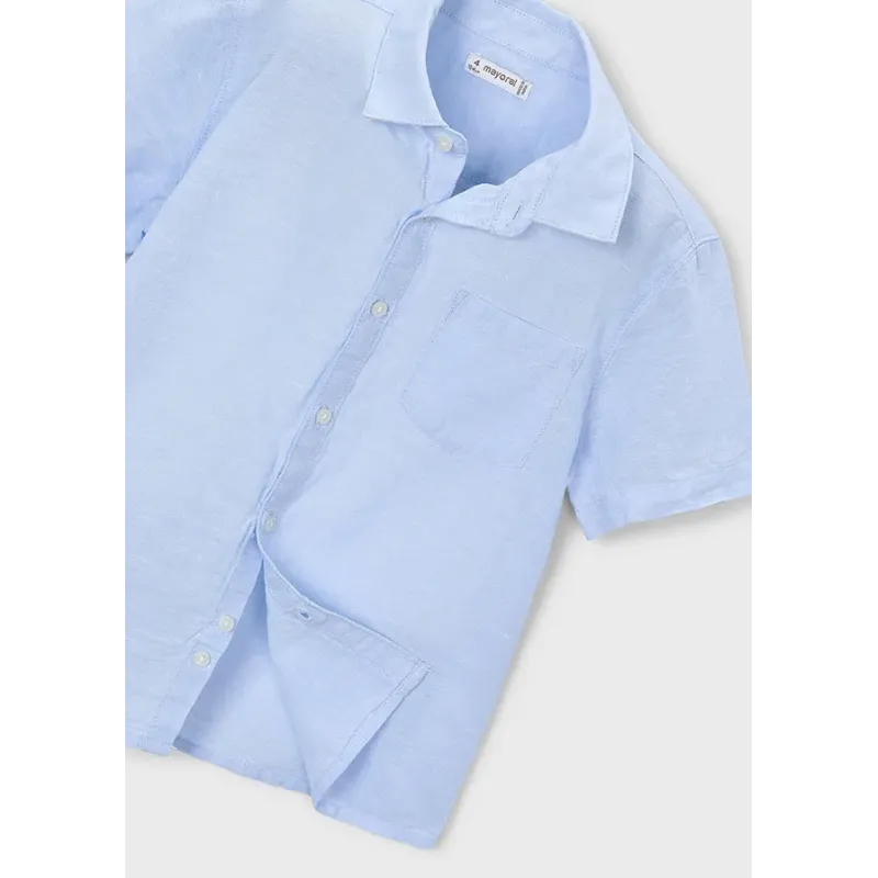 Koszula z krótkim rękawkiem z domieszką lnu dla chłopca. Skład: 84% Bawełna, 16% Len.