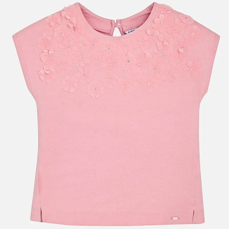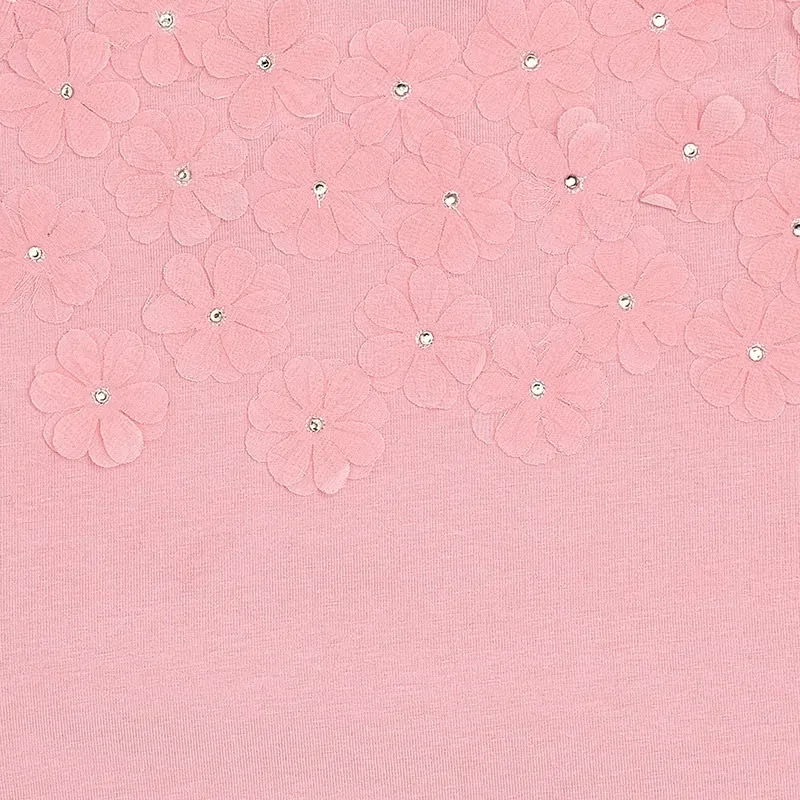 Koszulka z krótkim rękawkiem z naszytymi kwiatuszkami dla dziewczynki. Skład: 100% Bawełna.