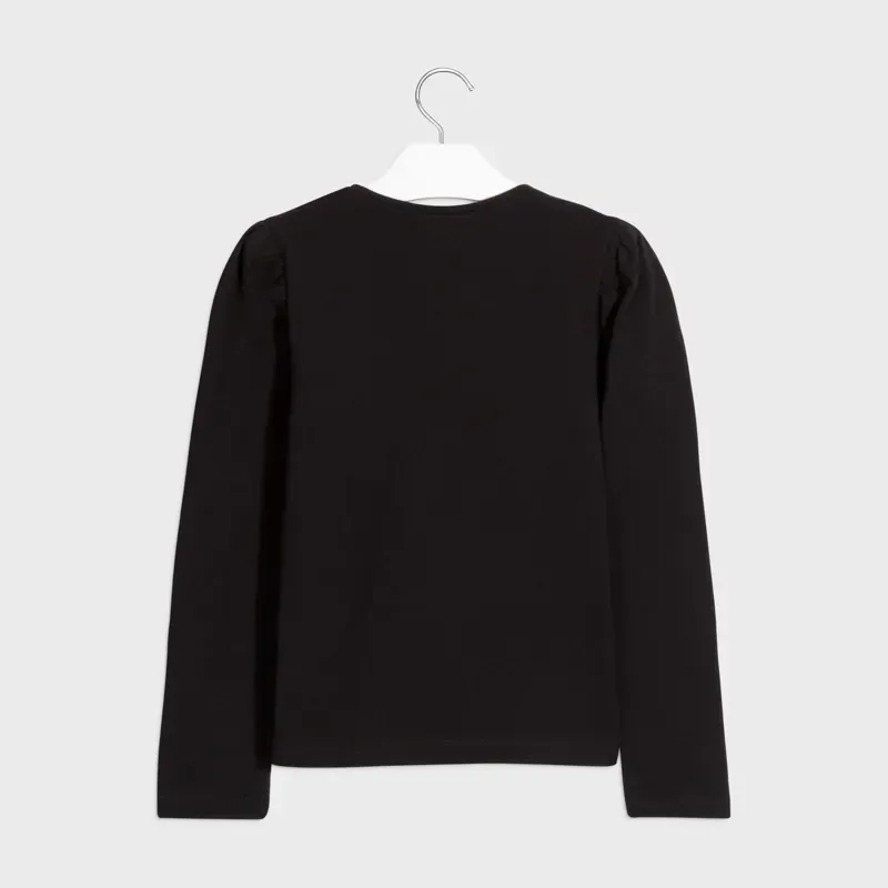 Koszulka z długim rękawem dla dziewczynk z detalami w pasujących kolorach. Okrągły dekolt. Delikatna i elastyczna bawełna. Aplikacja z efektem 3D. Skład: 92% Bawełna, 8% Elastan.