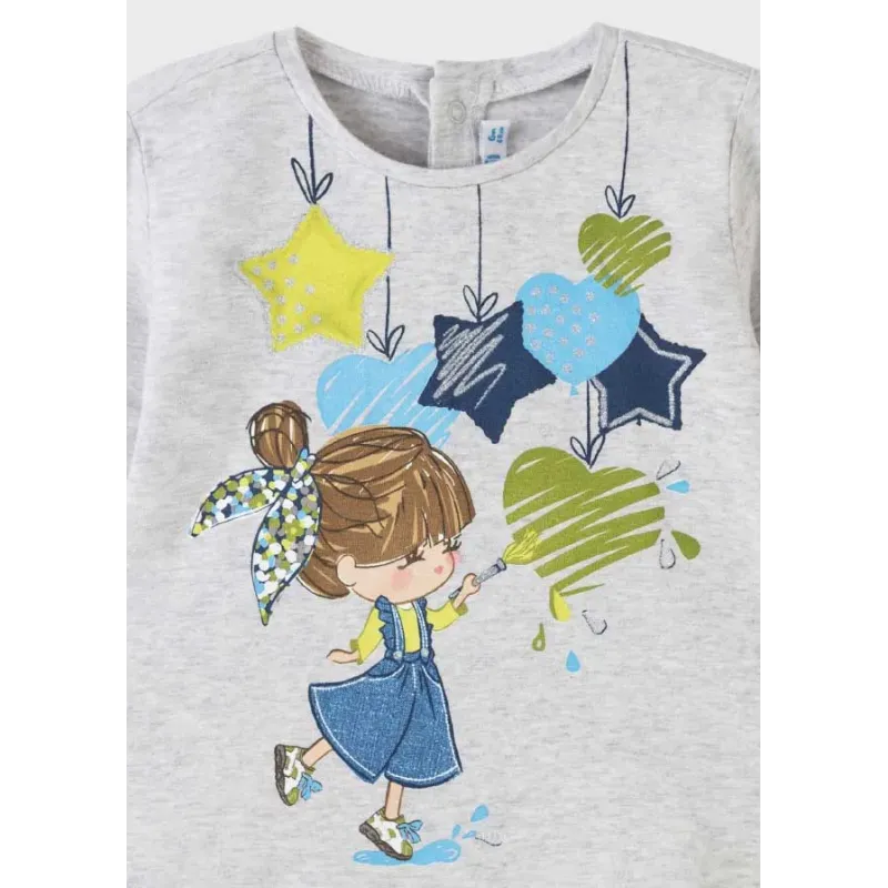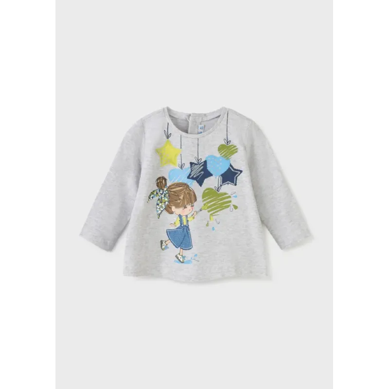 Koszulka z długim rękawem dla dziewczyny z bawełny organicznej. Okrągły dekolt. Delikatna i elastyczna bawełna. Ozdoby: grafiki na przodzie ubranka.