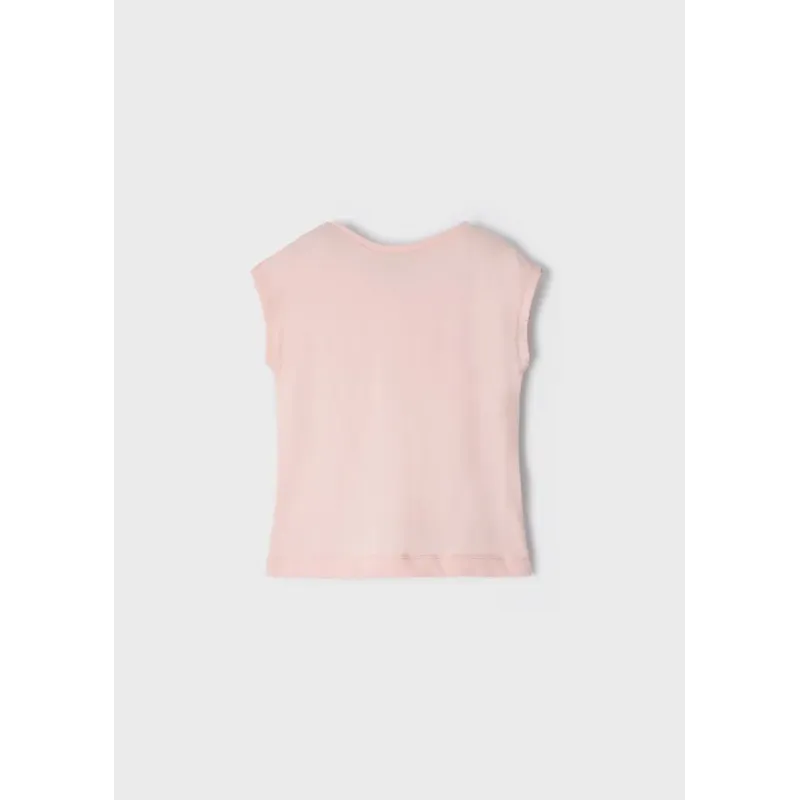 Koszulka z krótkim rękawem dla dziewczyny. Okrągły dekolt. Delikatna i elastyczna bawełna. Ozdoby: grafika na przodzie, glitter, ćwieki.