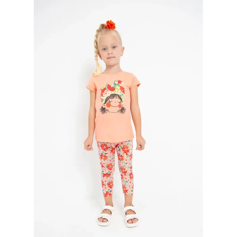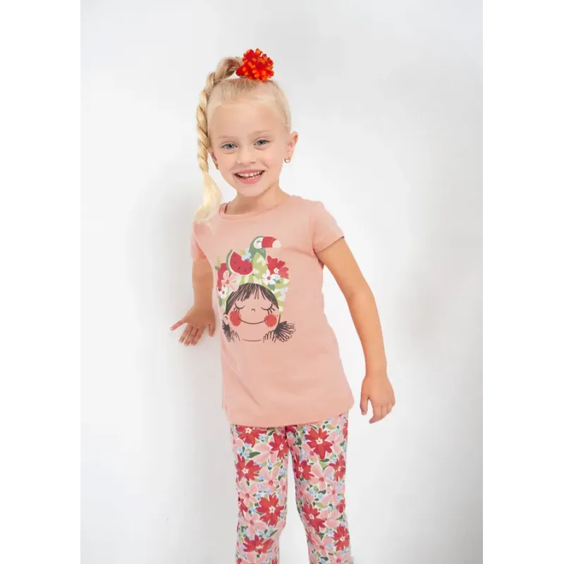 Koszulka z krótkim rękawem dla dziewczynki. Okrągły dekolt. Artykuł wykonany ze 100% bawełny. Nadruki.