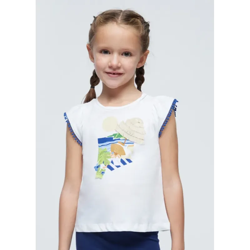 Koszulka z krótkim rękawem dla dziewczynki. Okrągły dekolt. Model z nadrukiem. Artykuł wykonany ze 100% bawełny.