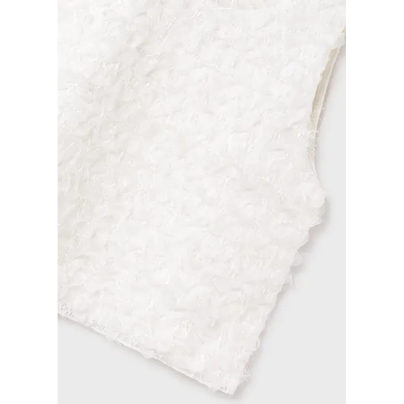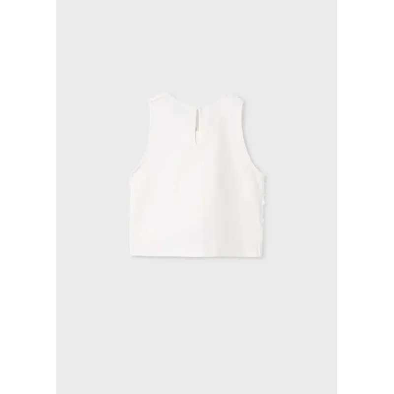 Top na ramiączkach dla dziewczyny. Okrągły dekolt. Delikatna i elastyczna bawełna. Zapięcie z tyłu na guziczek, ułatwiający zakładanie ubrania. Ozdoby: tiulowe ozdoby. Skład: 55% Bawełna, 43% Poliester, 2% Elastan. Podszewka: 96% Bawełna, 4% Elastan.
