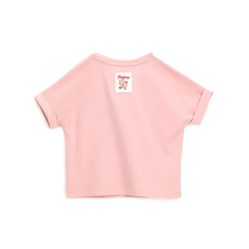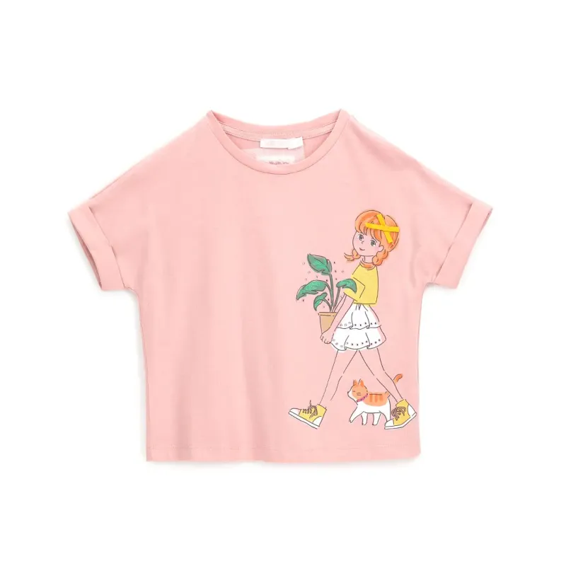 Koszulka z krótkim rękawem dla dziewczyny. Okrągły dekolt. Delikatna i elastyczna bawełna. Ozdoby: grafika na przodzie.