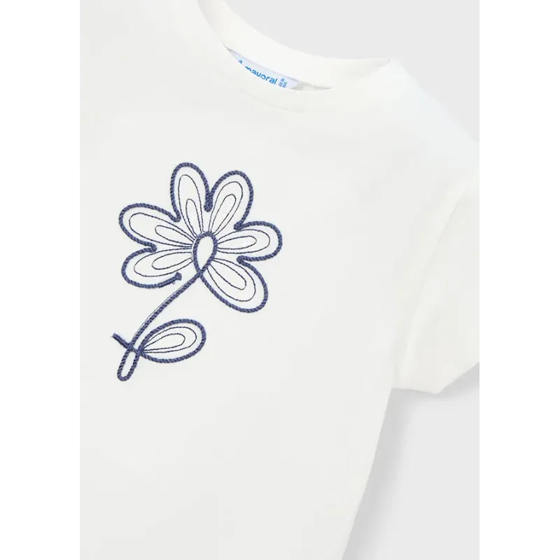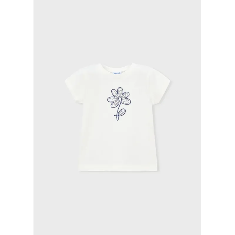 Koszulka z krótkim rękawem dla dziewczynki. Okrągły dekolt. Ozdobnie wykończony rękawek. Haftowane aplikacje na przodzie ubranka z tiulowym wykończeniem. Skład: 95% Bawełna, 5% Elastan.