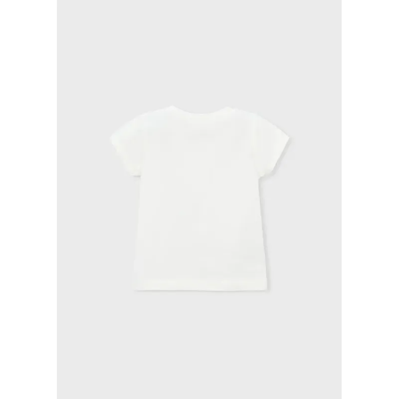 Koszulka z krótkim rękawem dla dziewczynki Baby. Okrągły dekolt. Zapięcie na małe zatrzaski na plecach, które ułatwiają założenie ubranka. Delikatna i elastyczna bawełna. Ozdoby: grafika na przodzie.