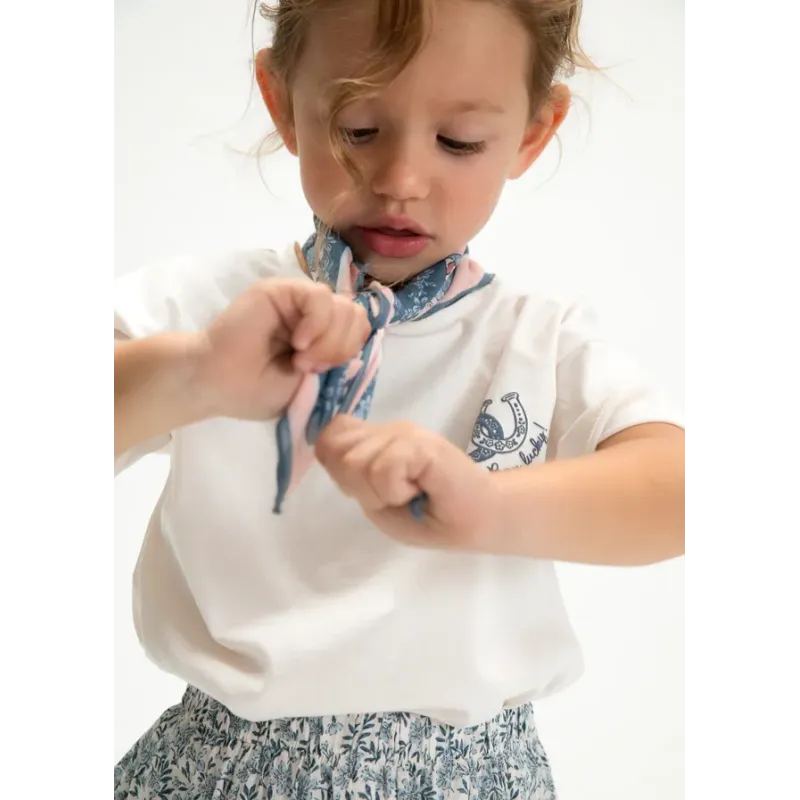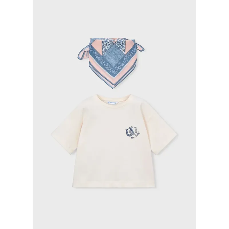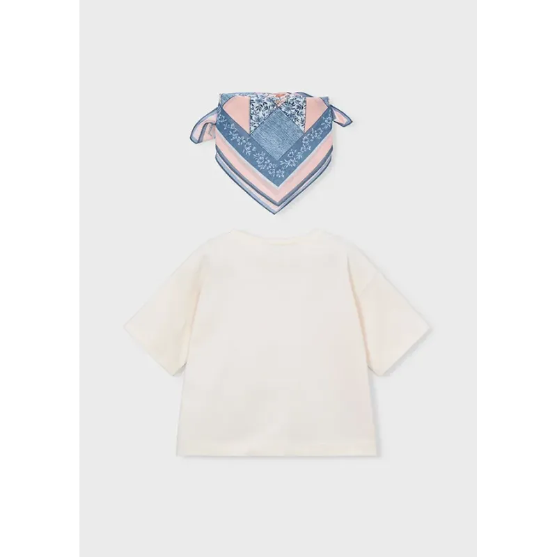 Koszulka z krótkim rękawkiem dla dziewczynki w zestawie z kolorową apaszką. Skład: 100% Bawełna.