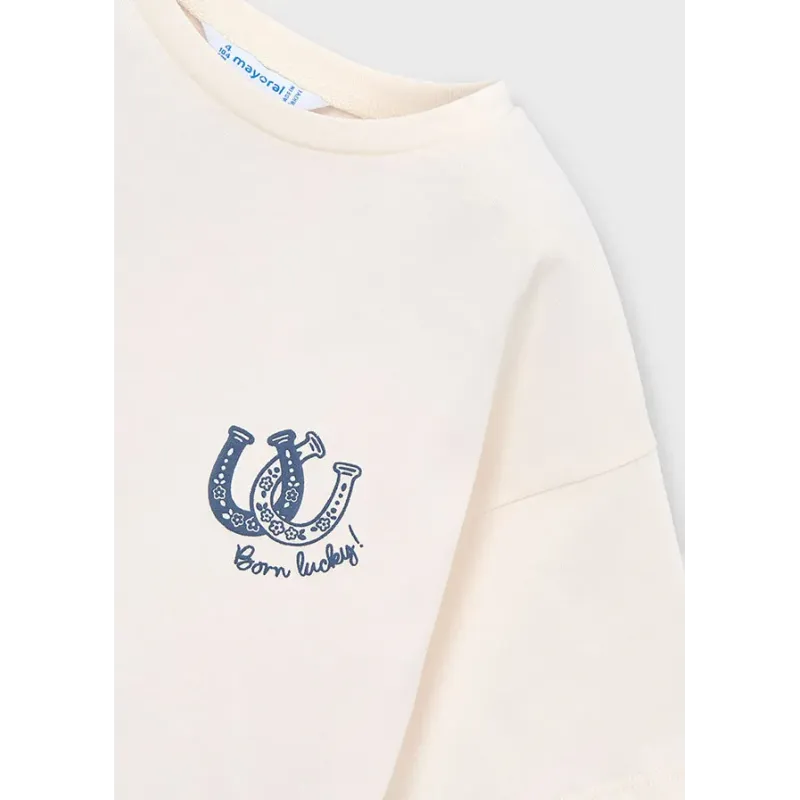 Luźna koszulka z krótkim rękawkiem dla dziewczynki. Skład: 100% bawełna.
