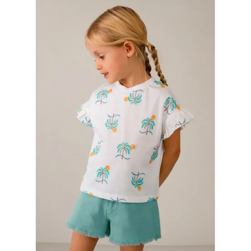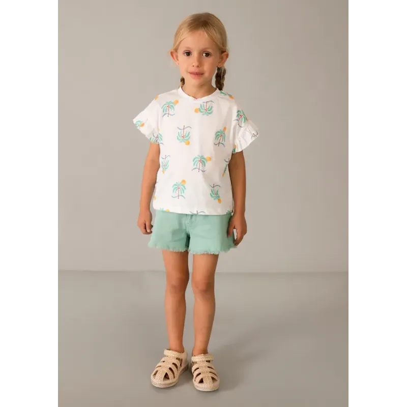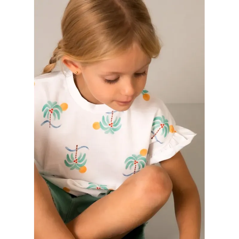 Koszulka z krótkim rękawem dla dziewczyny. Okrągły dekolt. Delikatna i elastyczna bawełna. Ozdoby: grafika na przodzie.