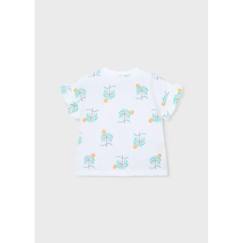 Ubranko ECOFRIENDS, zawiera bawełnę przetworzoną. Koszulka z krótkim rękawem dla dziewczynki Baby. Okrągły dekolt. Zapięcie na małe zatrzaski na plecach, które ułatwiają założenie ubranka. Delikatna i elastyczna bawełna. Ozdoby: grafika na przodzie.