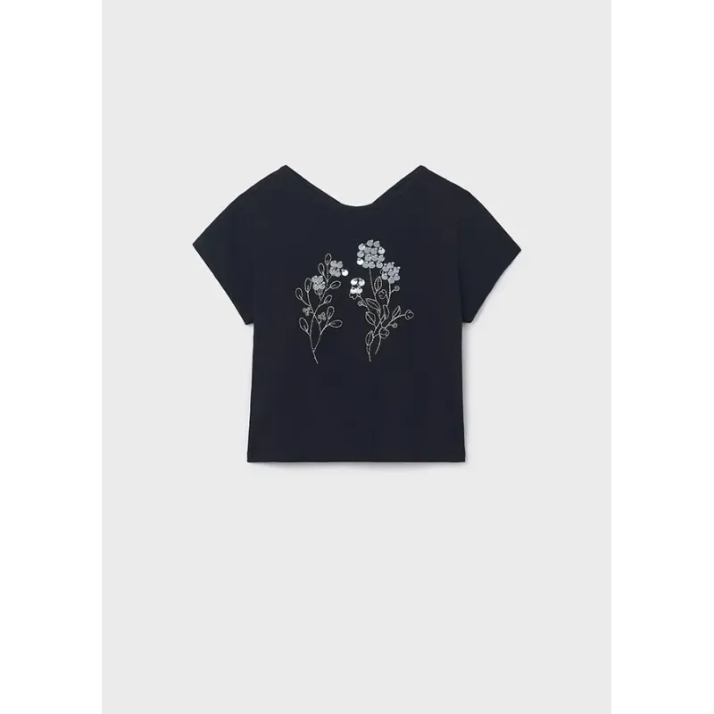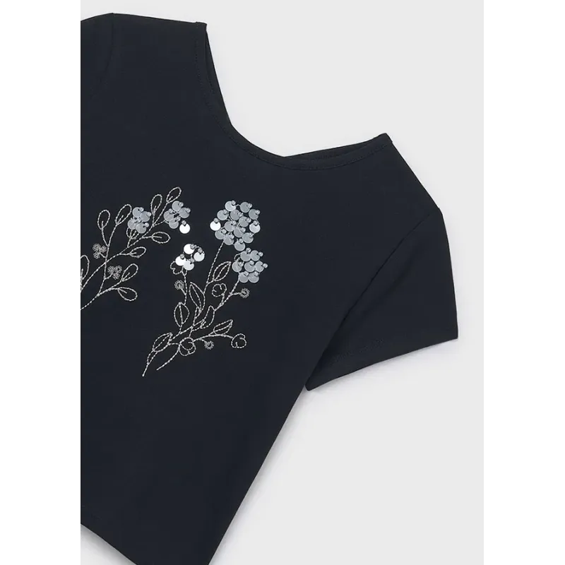 Koszulka z krótkim rękawkiem z haftem dla dziewczynki. Skład: 95% Bawełna, 5% Elastan.