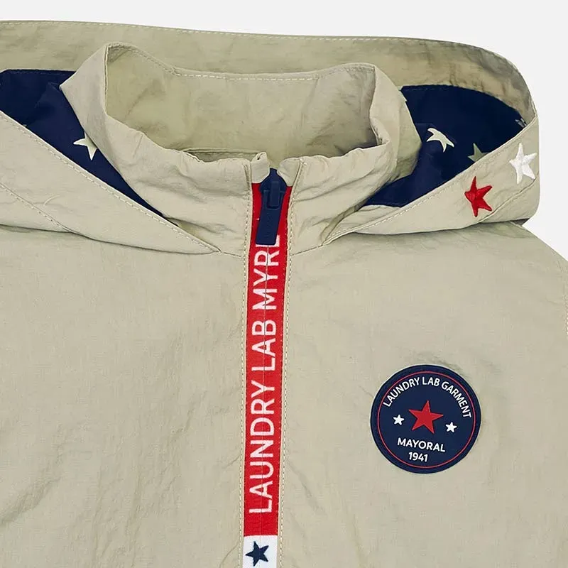 Kurtka wiatrówka z kapturem dla chłopca. Skład: 65% Bawełna, 35% Poliester.