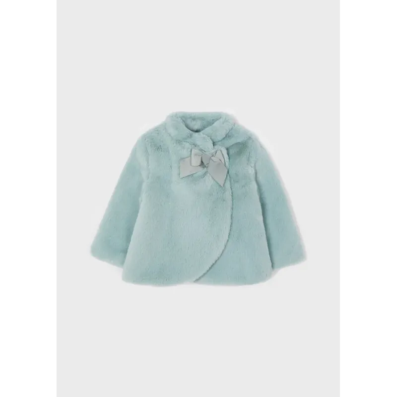 Płaszcz z długim rękawem dla niemowlęcia. Zapięcie na ukryte zatrzaski, które pozwolą w łatwy sposób założyć ubranko. Delikatna i gustowna zewnętrzna tkanina z misia