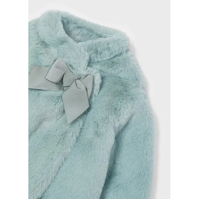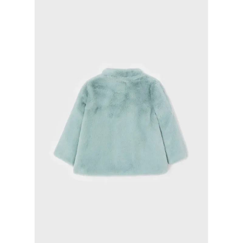 Pikowany płaszcz dla dziewczynki. Okrągły dekolt z futrzanym kołnierzem. Zapięcie na środku na zamek błyskawiczny. Lekka, oddychająca i bardzo wygodna tkanina techniczna imitująca skórę. Skład: 90% Poliuretan, 10% Poliester.