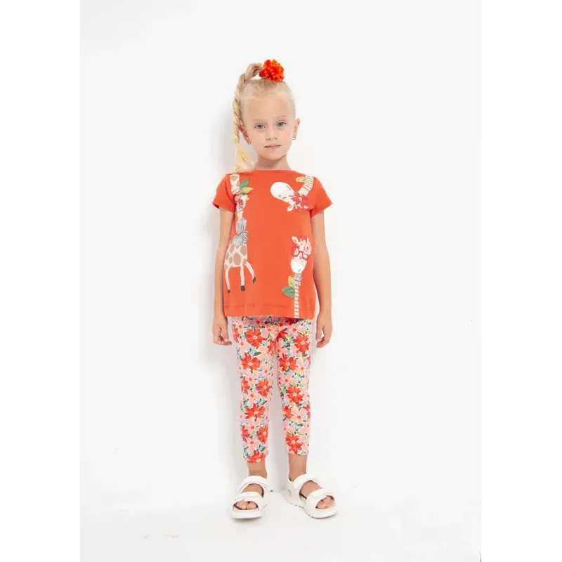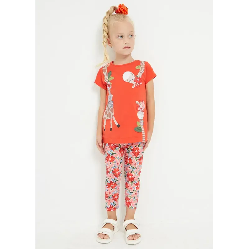 Spodnie typu leginsy 7/8 dla dziewczynki. Elastyczna gumka w pasie dla lepszego dopasowania. Delikatna i elastyczna bawełna. Projekt z nadrukiem. Skład: 95% Bawełna, 5% Elastan.