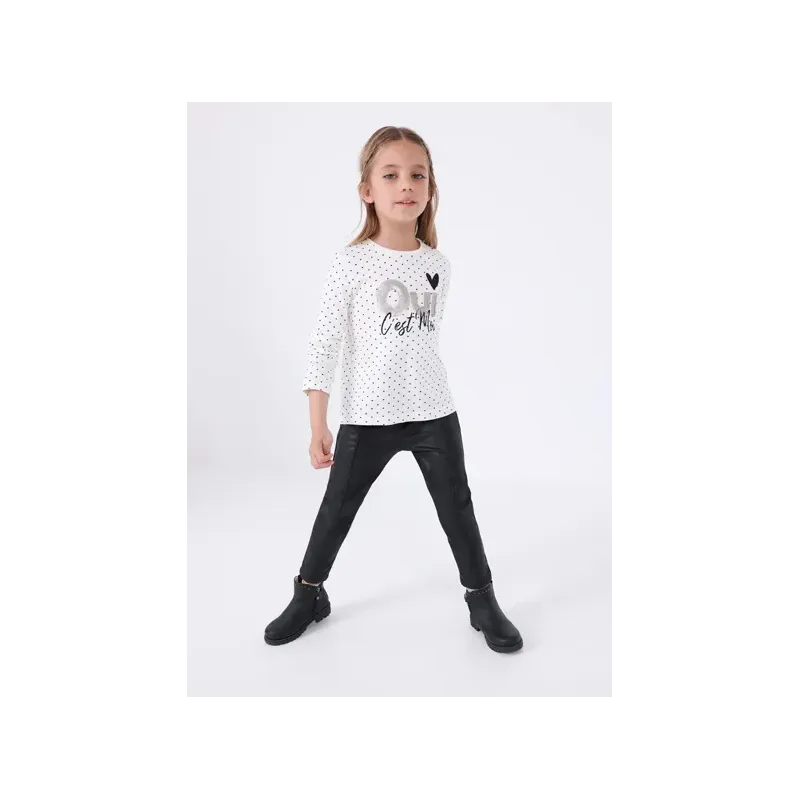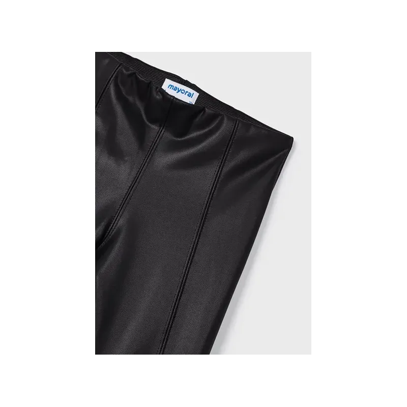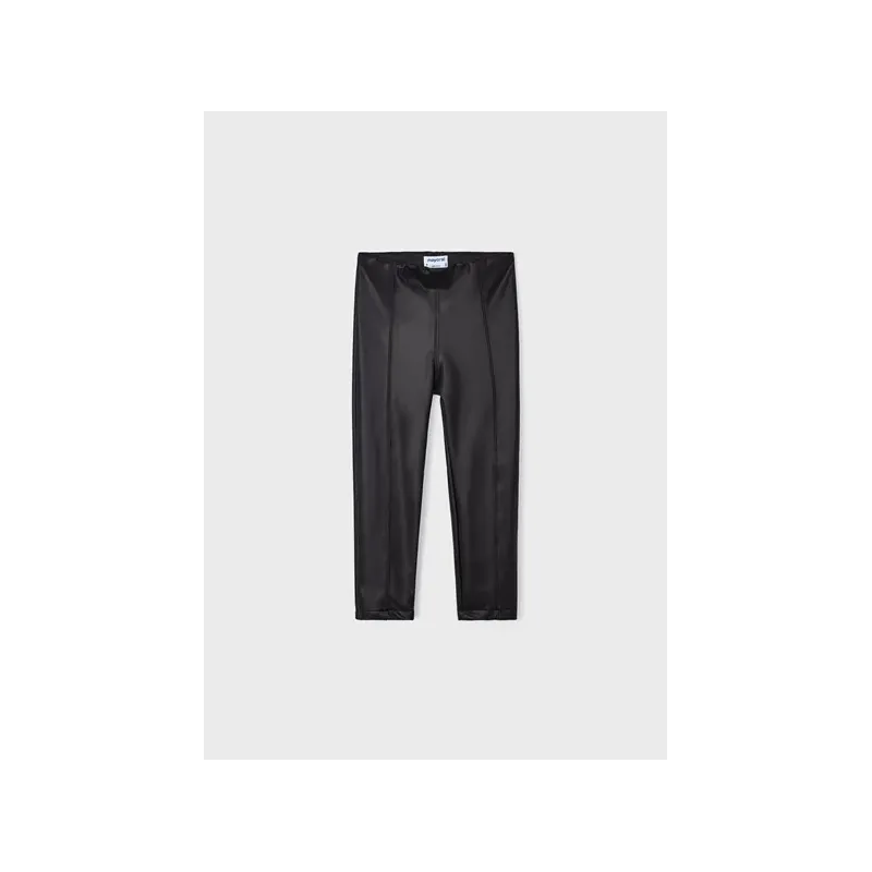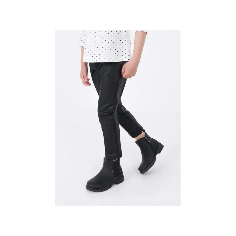 Spodnie typu leginsy dla dziewczynki. Elastyczna gumka w pasie dla lepszego dopasowania. Nowoczesny materiał zewnętrzny z imitacji skóry.