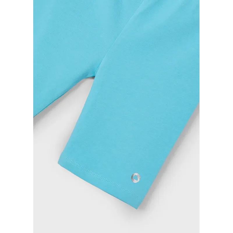 Gładkie legginsy typu kolarki z bawełny zrównoważonej dla dziewczynki. Elastyczna gumka w pasie dla lepszego dopasowania. Delikatna i elastyczna bawełna. Długość do kolan. Skład: 95% Bawełna, 5% Elastan.