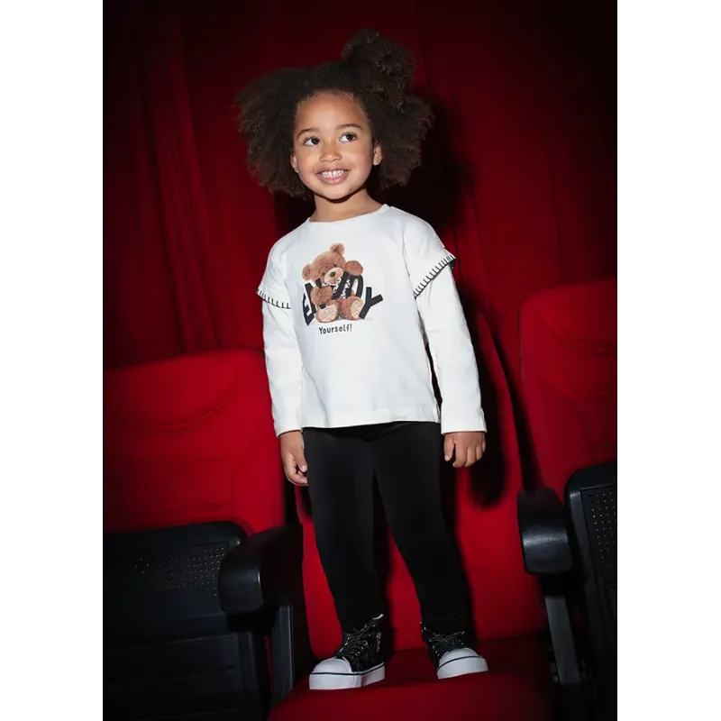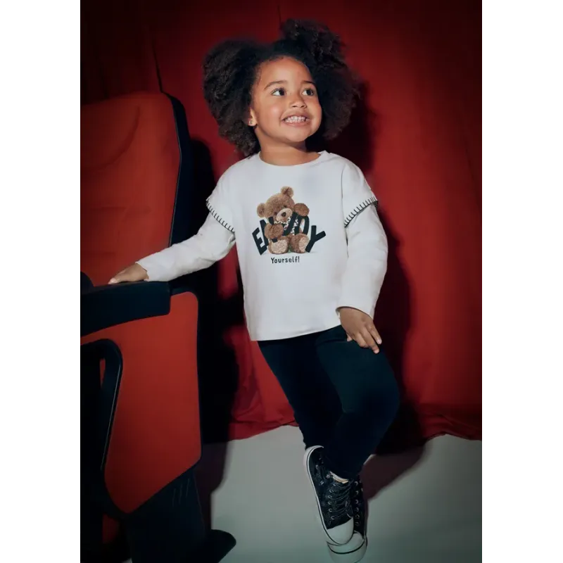 Spodnie typu leginsy dla dziewczynki. Elastyczna gumka w pasie dla lepszego dopasowania. Delikatna i elastyczna bawełna. Projekt z nadrukiem.