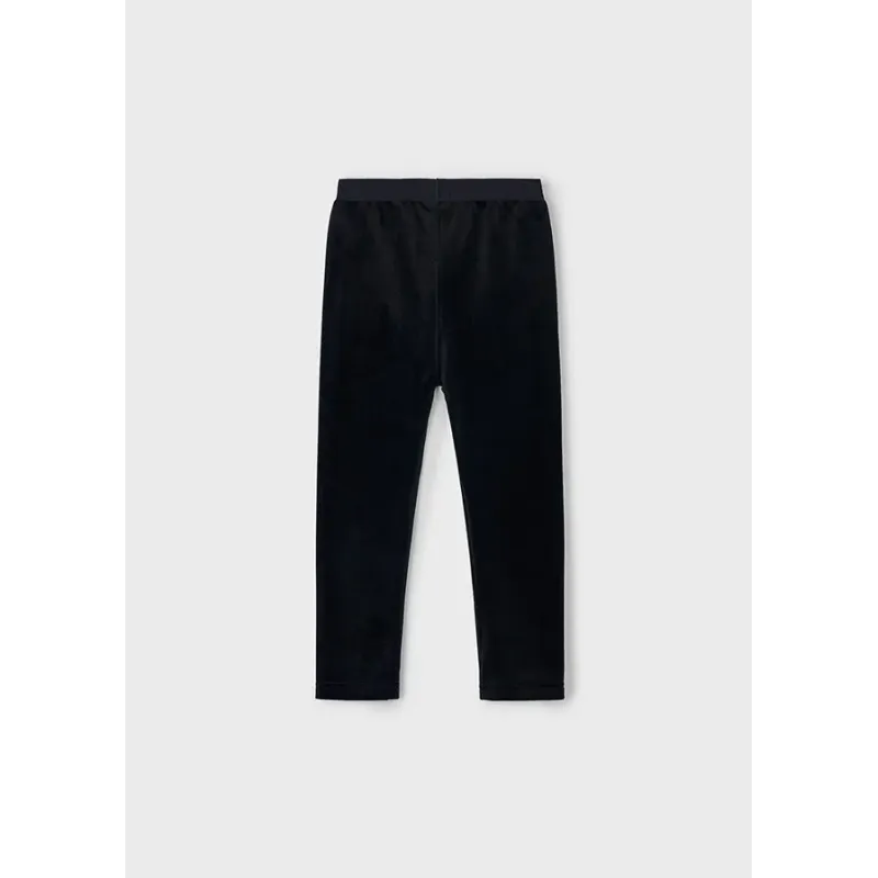 Spodnie typu legginsy dla dziewczynki. Miękki i przyjemny materiał imitujący aksamit. Elastyczna gumka w pasie dla lepszego dopasowania. Model w połyskujące groszki. Skład: 95% Poliester, 5% Elastan.