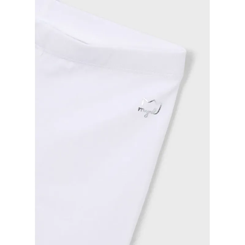 Gładkie legginsy typu kolarki z bawełny zrównoważonej dla dziewczynki. Elastyczna gumka w pasie dla lepszego dopasowania. Delikatna i elastyczna bawełna. Długość do kolan. Skład: 95% Bawełna, 5% Elastan.