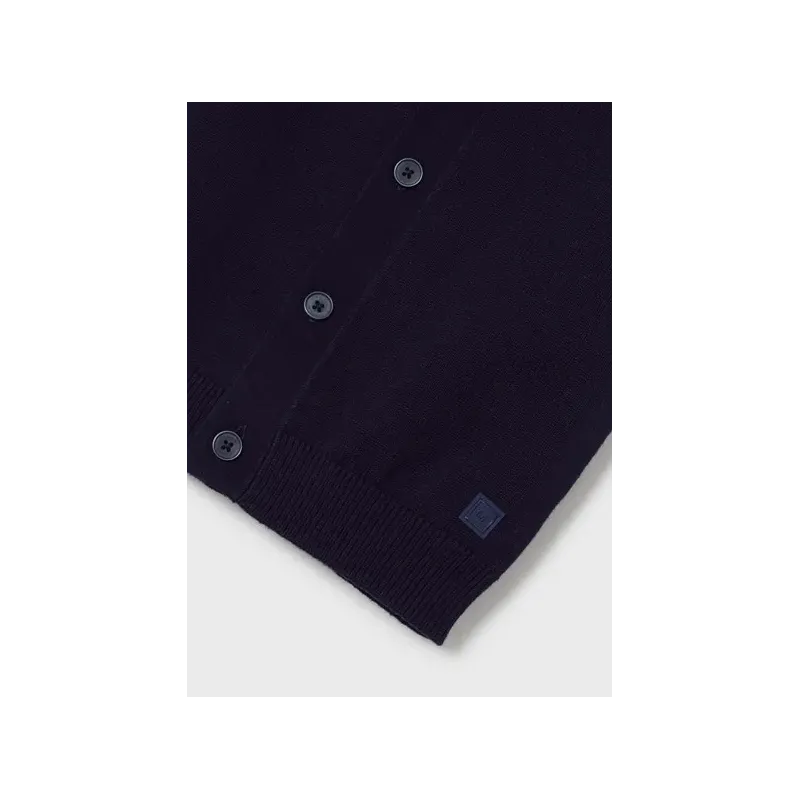 Kamizelka dla chłopca. Model z dekoltem w serek. Zapięcie z przodu na guziki. Miękka i przyjemna w dotyku dzianina trykotowa. Ozdoby: prążkowane detale. Skład: 95% Bawełna, 5% Poliamid.