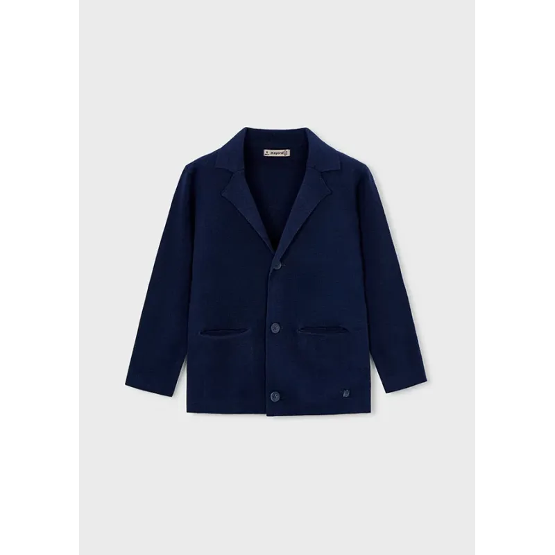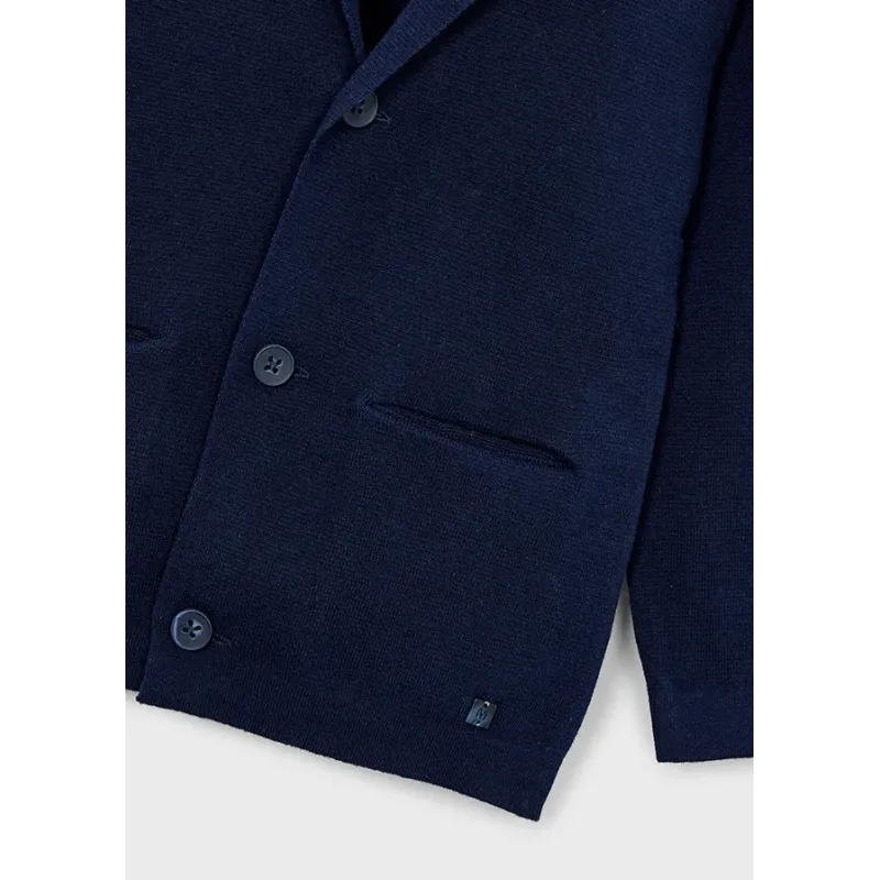 Dzianinowa marynarka z dekoltem w serek dla chłopca. Skład: 100% Bawełna.