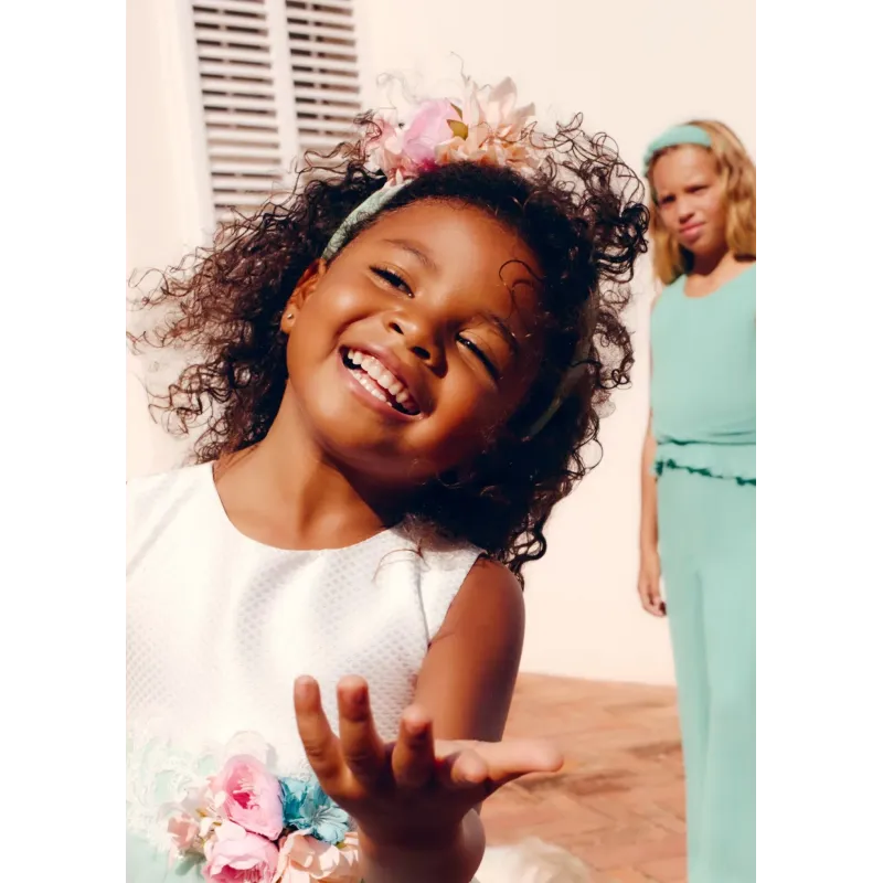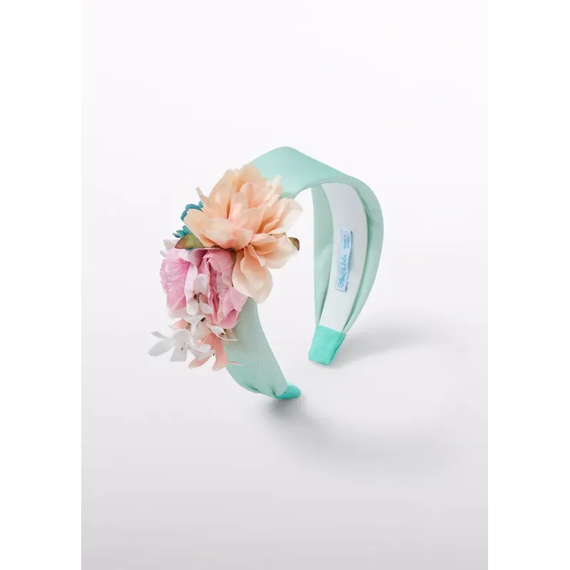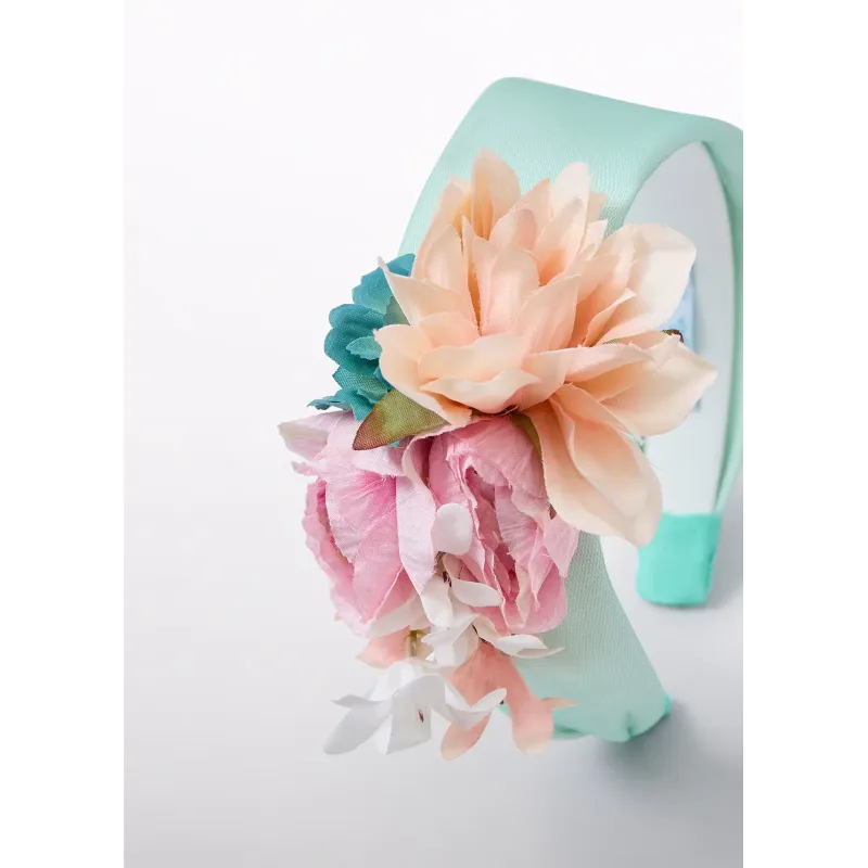 Oryginalna opaska do włosów dla dziewczynki, świetny dodatek uzupełniający stylizację. Ozdoby: kwiatowa aplikacja.