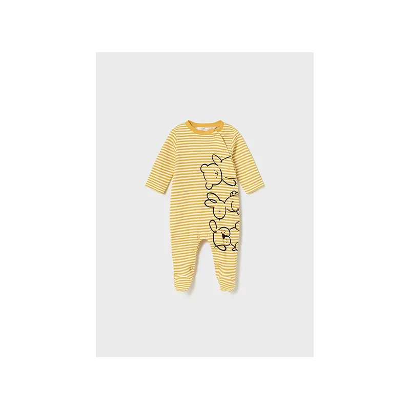 Ubranko ECOFRIENDS zawierające bawełnę organiczną. Długa piżamka dl a noworodka chłopca od 0 do 18 miesięcy. Model ze stópkami. Okrągły dekolt. Zapięcie z przodu ubranka oraz w kroku na zatrzaski. Artykuł ten jest pakowany w pudełeczko z linii Newborn.