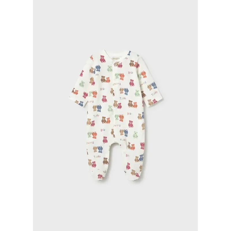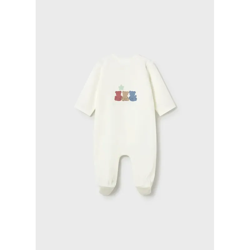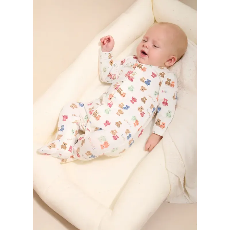 Ubranko ECOFRIENDS zawierające bawełnę organiczną. Długa piżamka dl a noworodka chłopca od 0 do 18 miesięcy. Model ze stópkami. Okrągły dekolt. Zapięcie z przodu ubranka oraz w kroku na zatrzaski. Artykuł ten jest pakowany w pudełeczko z linii Newborn.