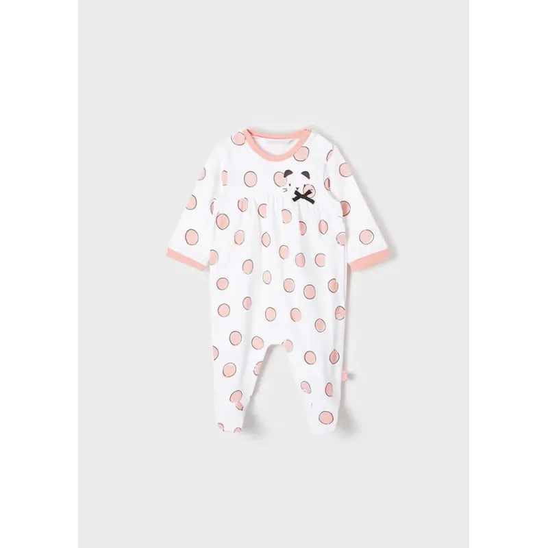 Ubranko ECOFRIENDS zawierające bawełnę organiczną. Piżamki dla noworodka dziewczynki. Model ze stópkami. Okrągły dekolt. Zapięcie z przodu ubranka oraz w kroku na zatrzaski. Artykuł ten jest pakowany w pudełeczko z linii Newborn.
