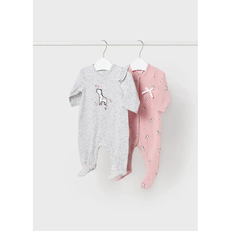 Oryginalny zestaw dwóch bawełnianych piżamek dla dziewczynki. Piżama z długim rękawem. Śpioszki ze stópkami. Okrągły dekolt. Zapięcie na zatrzaski z przodu oraz w kroku, dla łatwiejszego zakładania ubranka. Piżamki wykonane ze 100% bawełny.
