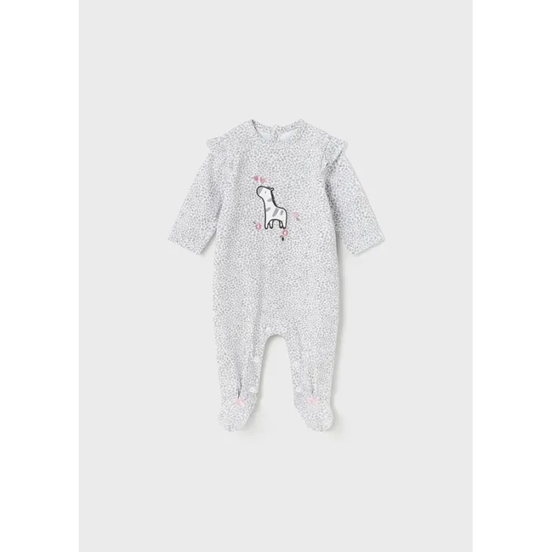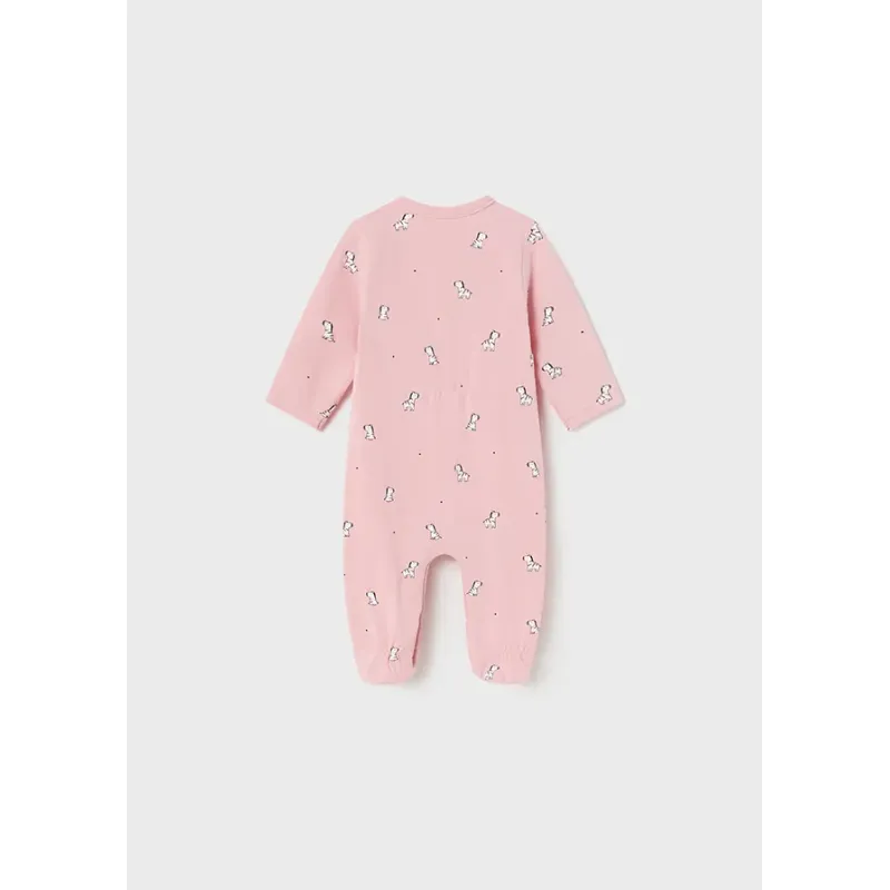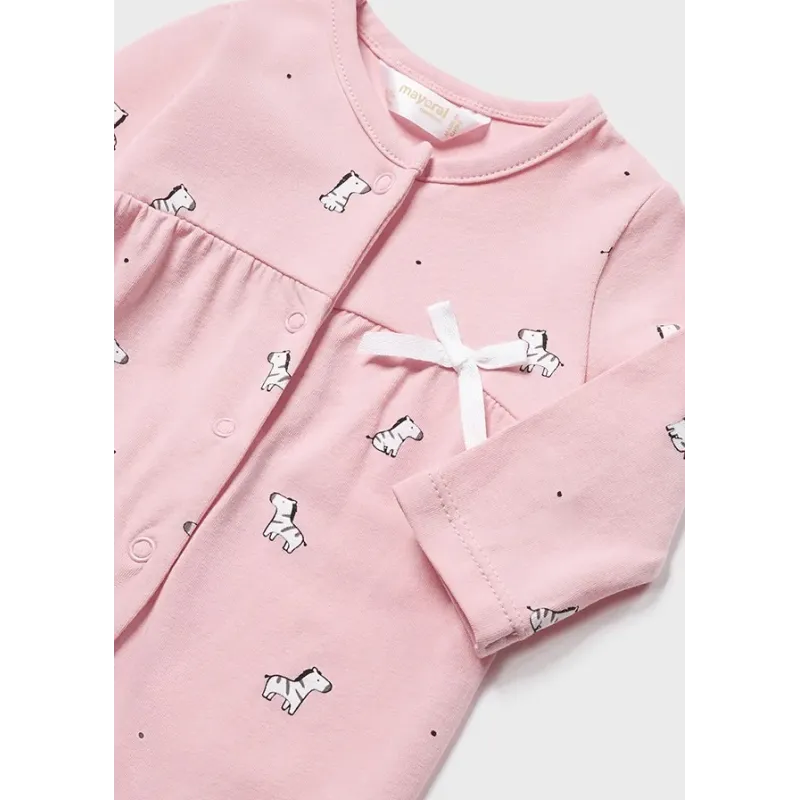 Ubranko ECOFRIENDS zawierające bawełnę organiczną. Piżamki dla noworodka dziewczynki. Model ze stópkami. Okrągły dekolt. Zapięcie z przodu ubranka oraz w kroku na zatrzaski. Artykuł ten jest pakowany w pudełeczko z linii Newborn.