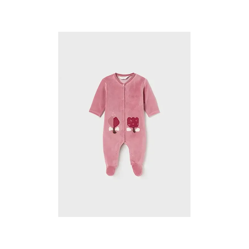 Piżamka ze stópkami dla dziewczynki. Zapięcie na zatrzaski z boku. Zapięcie na guziki w kroku. Model z nadrukiem. Większe rozmiary tego modelu (12 i 18 miesięcy) posiadają antypoślizgową podeszwę. Skład: 95% Bawełna, 5% Elastan