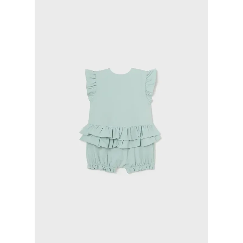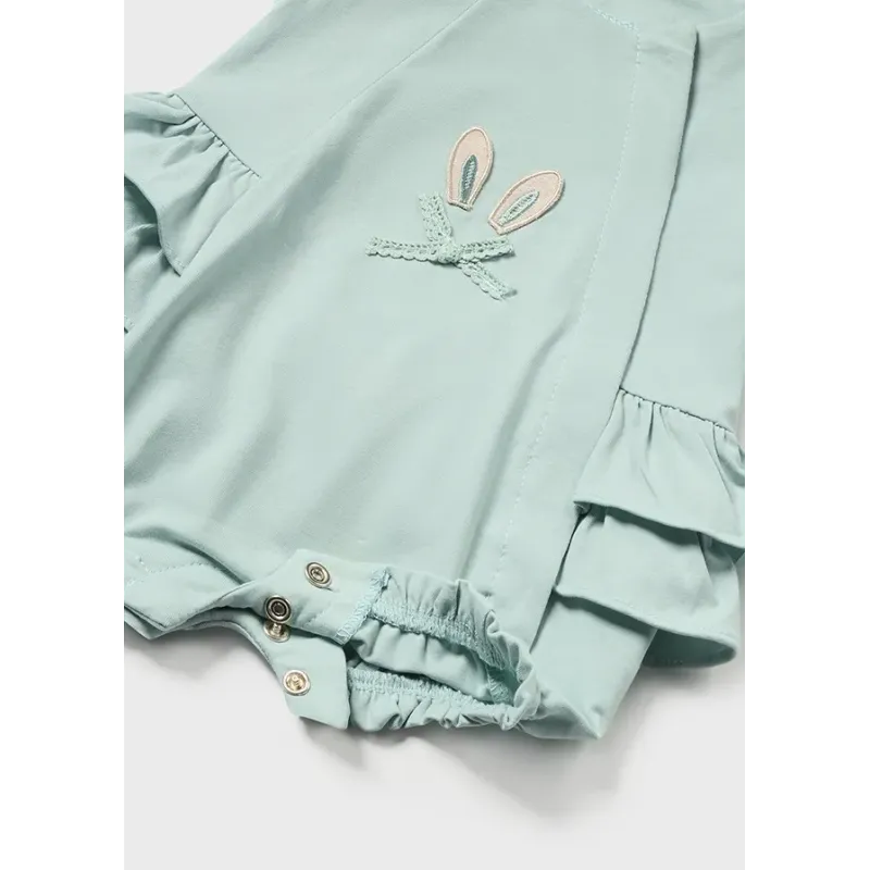 Zestaw dwóch krótkich piżamek dla dziewczynki. Okrągły dekolt. Zapięcie na pojedynczy zatrzask. Zapięcie na zatrzaski w kroku ułatwiające zakładanie ubrania. Ozdoby: ozdobne falbanki. Skład: 91% Bawełna 9% Elastan