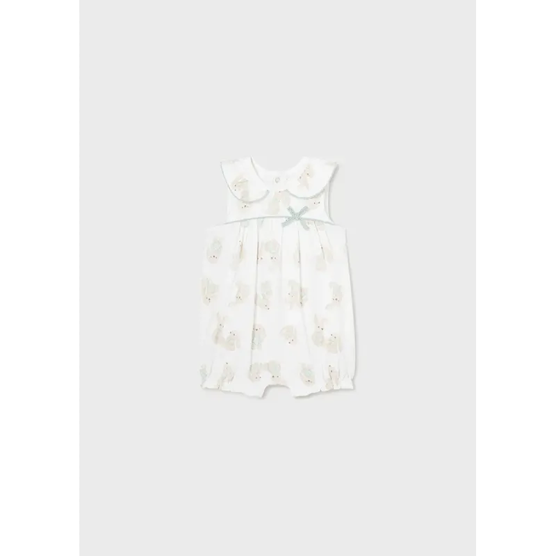 Oryginalny zestaw 2-częściowy dla dla noworodka dziewczynki. Piżama na szerokich ramiączkachi. Okrągły dekolt. Zapięcie na małe zatrzaski w na obu ramionach, które ułatwiają szybkie i wygodne założenie ubranka. Zestaw z opaską.