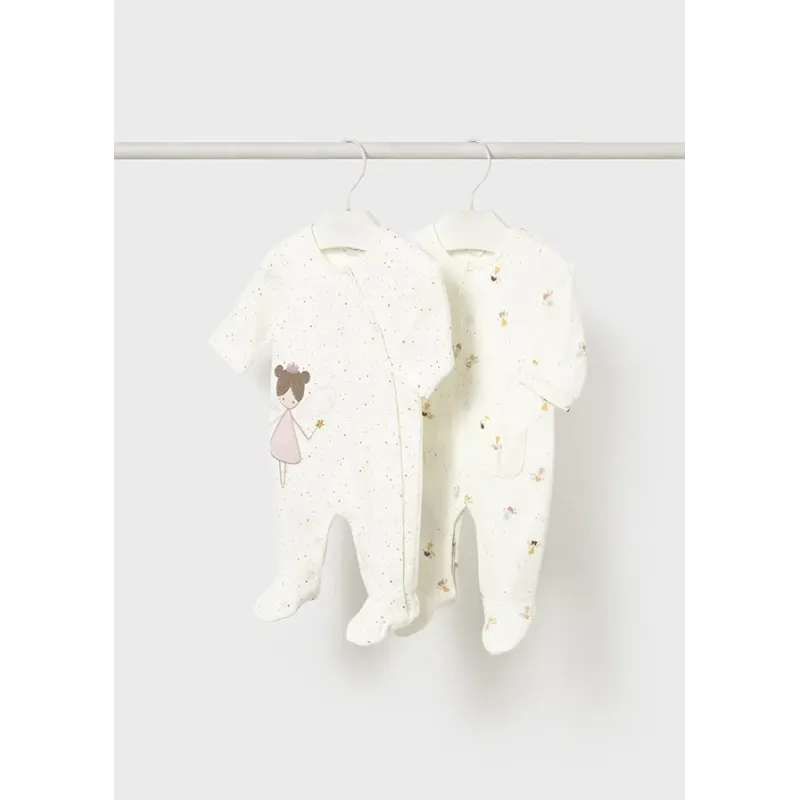 Oryginalny zestaw dwóch bawełnianych piżamek dla dziewczynki. Piżama z długim rękawem. Śpioszki ze stópkami. Okrągły dekolt. Zapięcie na zatrzaski z przodu oraz w kroku, dla łatwiejszego zakładania ubranka. Piżamki wykonane ze 100% bawełny.