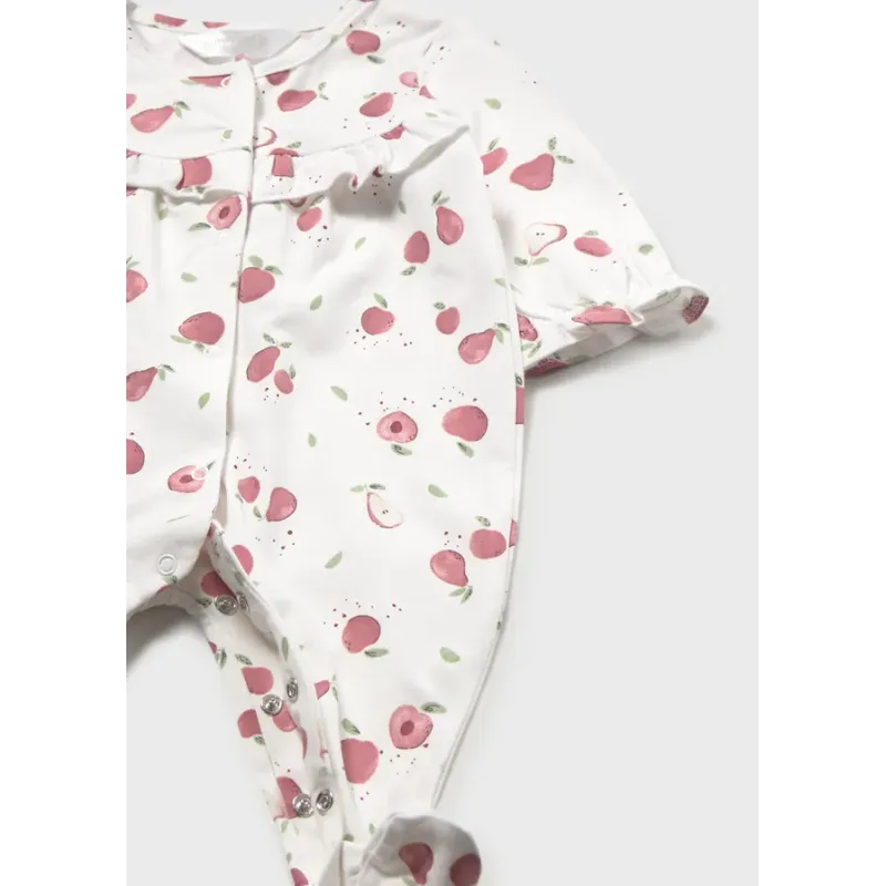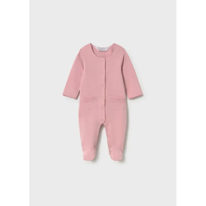 Ubranko ECOFRIENDS zawierające bawełnę organiczną. Piżamki dla noworodka dziewczynki. Model ze stópkami. Okrągły dekolt. Zapięcie z przodu ubranka oraz w kroku na zatrzaski. Artykuł ten jest pakowany w pudełeczko z linii Newborn.