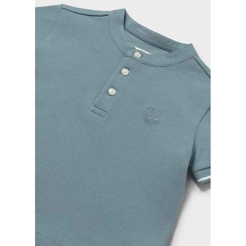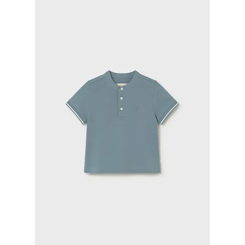 Koszulka ze stójką z krótkim rękawem dla chłopca. Skład: 95% Bawełna, 5% Elastan.