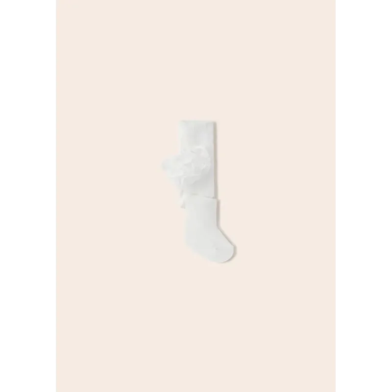 Gładkie rajstopy z falbanką z koronki dla dziewczynk. Niezbędny i uniwersalny dodatek zapewniający dużą wygodę. Skład: 88% Poliamid 12% Elastan